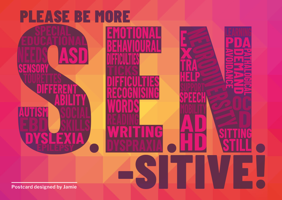 We created postcards with the young people choosing to create something around a theme that was important to them.